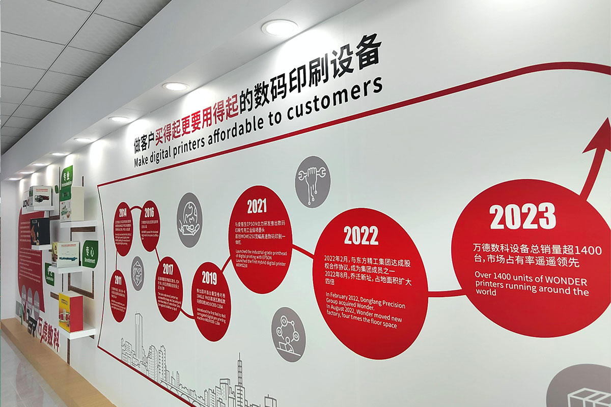 深圳市萬德數字科技有限公司(以下簡稱:萬德數科),東方精工集團成員之一,數碼印刷行業的領軍者,國家級高新技術企業,國家級“專精特新小巨人”企業。始于2011,致力于為客戶提供環保、節能、高效、性價比高的數碼印刷設備。先后推出適用于瓦楞紙板小批量印刷的Muti Pass掃描式數碼印刷機系列,可滿足大、中、小各類瓦楞紙板訂單的Single Pass高速數碼印刷機和直出掃描一體機,以及適用于原紙預印的Single Pass高速卷對卷數碼印刷機系列。